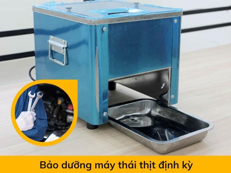 Ngoài việc sử dụng máy thái thịt đúng cách thì việc bảo dưỡng định kỳ cũng là khâu giúp thiết bị hoạt động ổn định không bị hỏng vặt. Việc bảo dưỡng diễn ra như sau: kiểm tra các linh kiện của thiết bị có bị hỏng hoặc đã quá mòn, hay cũ không sau đó thay thế. Tiếp đến cần tra dầu vào động cơ hoặc một số bộ phận, để thiết bị hoạt động ổn định. Bạn không cần phải ngày nào cũng kiểm tra, mà đặt ra thời gian nhất định, chẳng hạn máy mới khoảng 3-5 tháng kiểm tra, máy đã dùng một thời gian, tùy mức độ, sẽ bảo dưỡng 1-2 tháng. Nếu như cần phải thay thế linh kiện mà bạn không tự làm được, có thể liên hệ đến bên bán hoặc khi hết thời hạn bảo hành mà không biết nơi để sửa hoặc thay thì để Siêu thị Hải Minh gợi ý cho bạn địa chỉ sửa uy tín, đó chính là Benhvienmaycokhi.vn