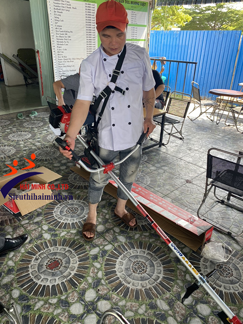 Kỹ thuật công ty Hải Minh tăng ca sau lễ, giao tận nơi máy cắt cỏ Oshima 330 2 thì cho Khách hàng tại Tân Uyên Bình Dương.