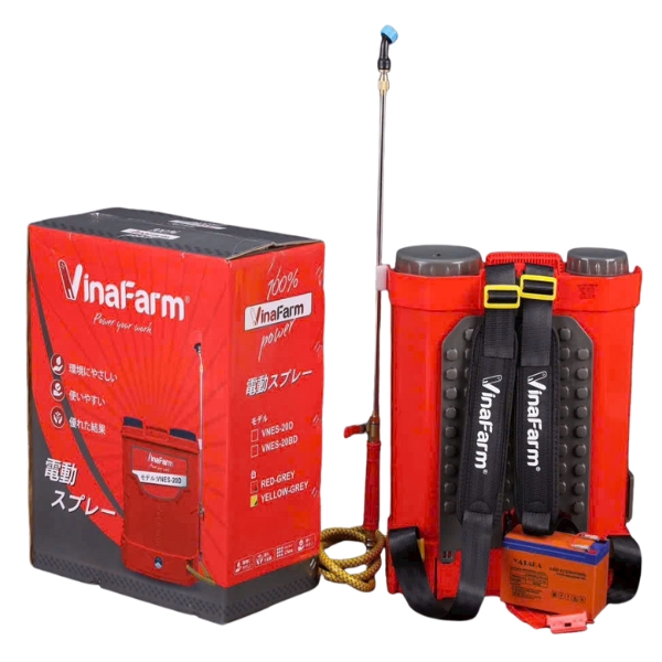 - VinaFarm VNES-20D sử dụng ắc quy 8AH – 12V, cho thời gian làm việc dài, ổn định, đáp ứng tốt nhu cầu phun xịt liên tục trong nhiều giờ mà không lo gián đoạn công việc.2.4 Đầy đủ phụ kiện đi kèm