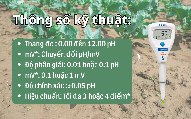 - Độ phân giải: 0.01 hoặc 0.1 pH