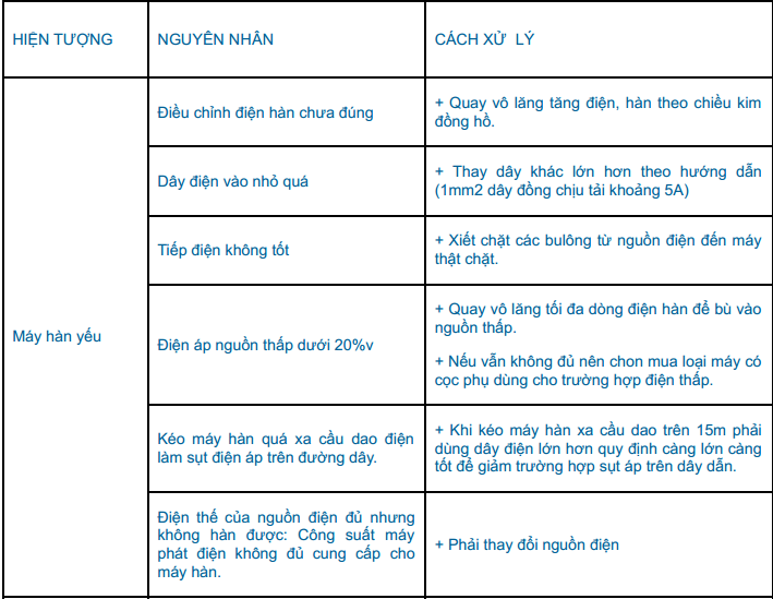 Xin quý khách hàng, các anh chị và các bạn khi xảy ra lỗi của máy hàn nên tham khảo kỹ các chỉ dẫn bên dưới, với những kiến thức còn nhiều hạn chế tuy nhiên chúng tôi không ngừng tìm tòi và học hỏi, chúng tôi mong rằng những hiểu biết, kinh nghiệm của mình sẽ giúp được quý khách hàng tốt hơn.