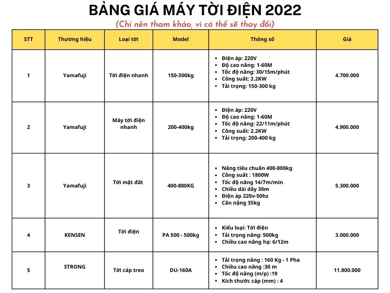 Trước khi mua máy tời điện, bạn sẽ đi khảo giá trước, để biết được dòng tời mình dự định mua có khoảng giá là bao nhiêu? Để xem xét xem có phù hợp với chi phí mình định bỏ ra hay không. Về giá thành của thiết bị tời thường sẽ biến động và thay đổi theo thời gian hoặc chênh lệch giữa các bên bán với nhau. Bài viết này, chúng tôi đã tổng hợp lại giá thành của một số dòng để cho bạn tham khảo.