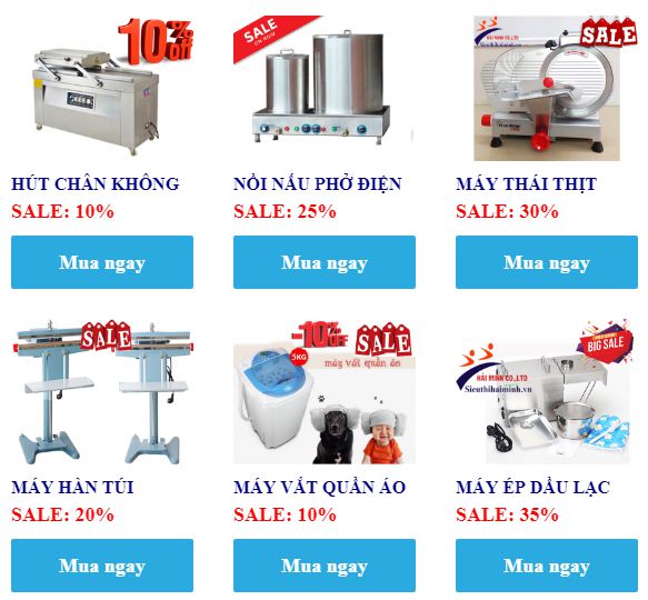 Thấu hiểu được những nhu cầu của khách hàng, Hải Minh triển khai chương trình giảm giá cực mạnh các thiết bị trên với mức ưu đãi cụ thể như sau: máy hút chân không, máy vắt quần áo giảm 10%, máy hàn túi giảm 20%, nồi nấu phở điện ưu đãi 25%,  máy thái thịt 30%, máy ép dầu lạc 35%.