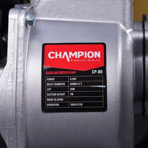 Sở hữu công suất 6.5Hp, lưu lượng bơm tối đa lên đến 50m³/h, cùng thiết kế nhỏ gọn nhưng chắc chắn, Champion CP-80 là lựa chọn đáng tin cậy cho nông dân, công trình xây dựng và các hộ gia đình cần một chiếc máy bơm nước mạnh mẽ, bền bỉ và dễ sử dụng.1. Thông số kỹ thuật máy bơm nước Champion CP-80