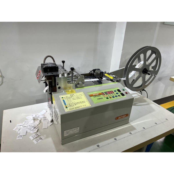 Máy cắt nhãn này sử dụng dao cắt nguội bằng thép tốc độ cao, cho đường cắt gọn, sắc nét, không tưa mép, xơ sợi, đáp ứng tiêu chuẩn thẩm mỹ cho tem nhãn dệt và dây đai.