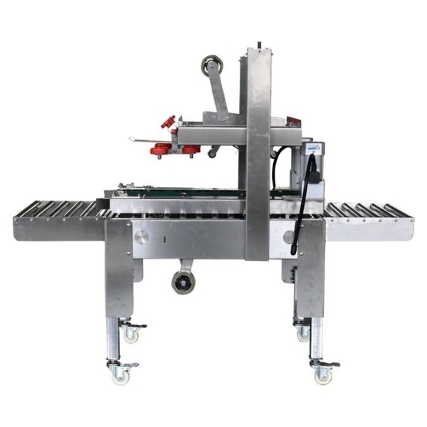 Khung máy làm bằng inox cao cấp, chịu lực, chống gỉ sét, chống ăn mòn, phù hợp với môi trường thủy sản, kho lạnh, nơi yêu cầu tiêu chuẩn vệ sinh khắt khe như thực phẩm, dược phẩm,… Máy dán thùng dễ vệ sinh, lau chùi sau mỗi ca làm việc, giúp duy trì thẩm mỹ và tuổi thọ, giảm chi phí bảo trì bảo dưỡng.