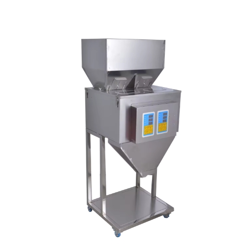 Sai số chỉ rơi vào khoảng ±3g - là con số cực kỳ ấn tượng đối với dòng máy định lượng dạng bột và hạt nhỏ. Việc kiểm soát chính xác khối lượng giúp doanh nghiệp đồng nhất chất lượng sản phẩm trên mọi bao bì, tránh tình trạng "gói vơi gói đầy" gây mất lòng tin với khách hàng.b. Thiết kế hai đầu cân, nhân đôi tốc độ