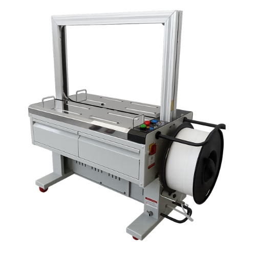 Máy đóng đai thùng được làm từ khung nhôm hợp kim bền bỉ, chống ăn mòn và va đập tốt. Với thiết kế tối giản nhưng hiện đại, JN-85E có thể dễ dàng tháo rời – lắp ráp khi cần bảo trì. Hệ thống 4 bánh xe dưới chân giúp di chuyển linh hoạt ngay cả trong không gian chật hẹp.