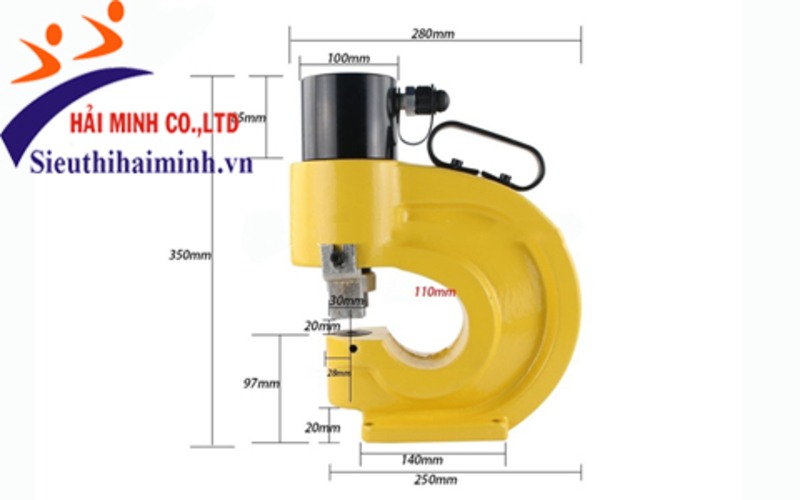 - Máy tạo những lỗ với đường kính lỗ đa dạng: 10.5mm, 13.8mm, 17mm hoặc 20.5mm tùy vào đầu đột mà bạn lắp vào máy. Khả năng đục được những lỗ sâu 110mm, khả năng đột tôn dày 10mm, đột thanh đồng cái dày 12mm một cách nhanh chóng và tiện lợi.