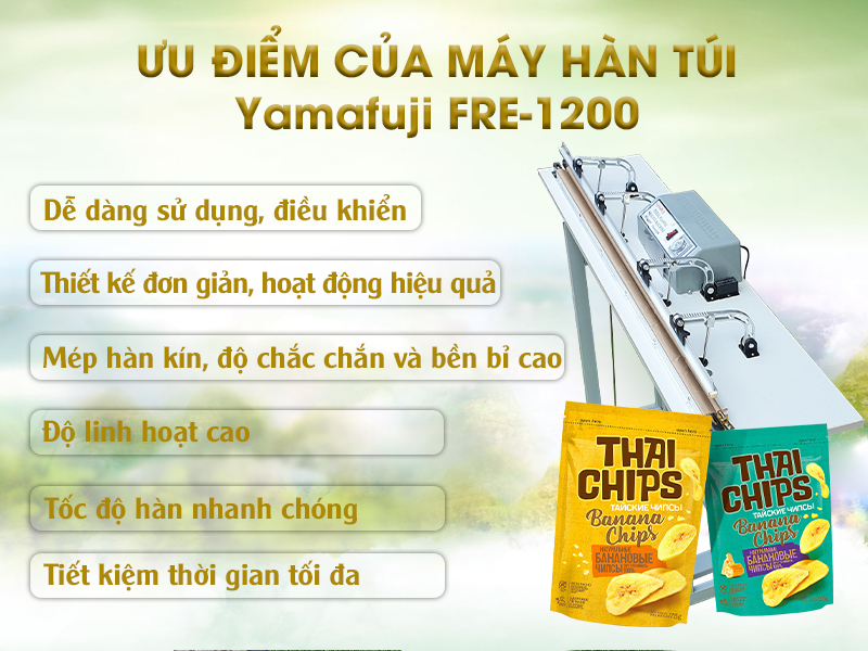 Máy hàn miệng túi dập chân Yamafuji FRE-1200 sở hữu công nghệ hiện đại từ Nhật Bản, là dòng máy hàn túi có chiều dài đường hàn lớn, thích hợp sử dụng cho nhiều nhu cầu đóng gói bảo quản các mặt hàng kích thước lớn như: chăn, ga, …
