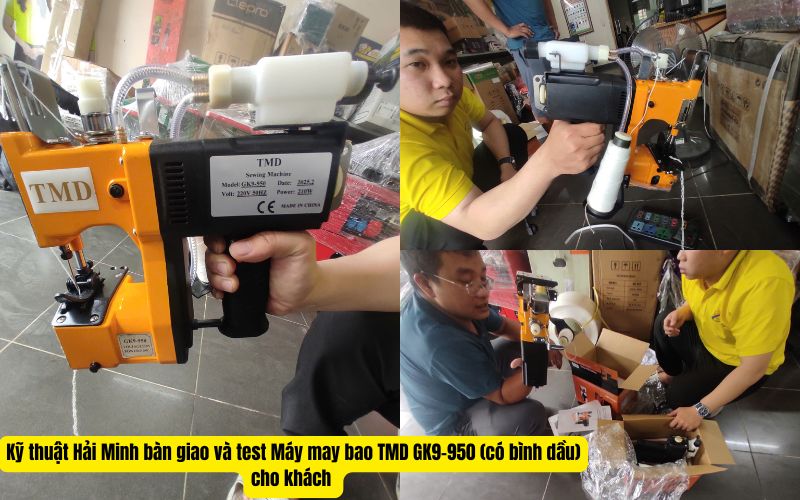 Máy khâu bao cầm tay TMD GK9-950 có bình dầu hiện đã có mặt tại các chi nhánh thuộc hệ thống cửa hàng của siêu thị Hải Minh.