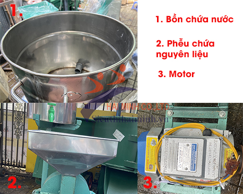 2. Sau khi đã kiểm tra bạn khởi động máy. Tiếp đó, bạn cho nước sạch vào khay đựng nước và cho nguyên liệu vào phễu chứa nguyên liệu ngay cạnh khay vuông đựng nước sạch.