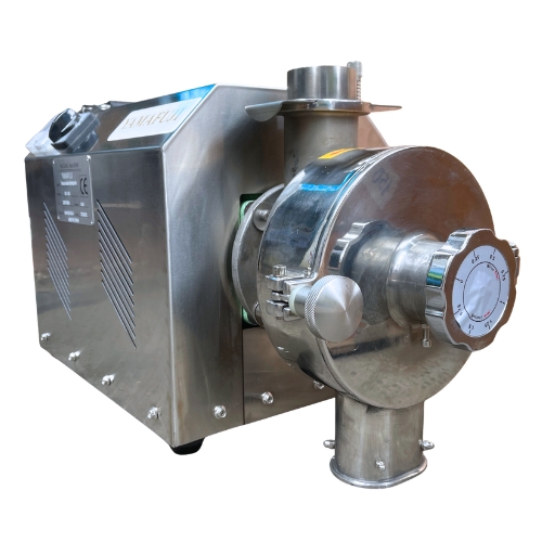 Hệ thống nghiền chắc chắn, hiệu quả, giúp nguyên liệu được nghiền nhỏ và đồng đều, quá trình nghiền diễn ra ổn định và an toàn. Van điều chỉnh lượng cấp liệu giúp kiểm soát tốc độ nạp liệu tốt, chống nghẽn. Nam châm hút kim loại giúp loại bỏ tạp chất kim loại. Cửa xả bột tiện lợi giúp thu bột nhanh, gọn, sạch sẽ.
