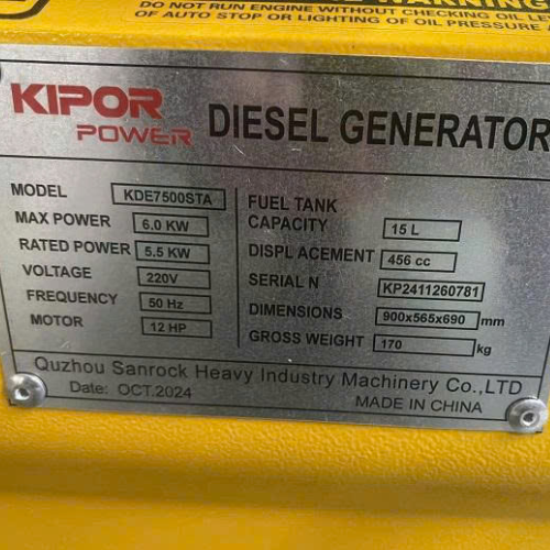 - Máy phát điện KIPOR KDE-7500STA cung cấp nguồn điện xoay chiều 220V – 50Hz – 1 pha, phù hợp với hầu hết các thiết bị dân dụng và công nghiệp hiện nay. Điện áp ổn định giúp bảo vệ thiết bị khỏi chập, sụt áp hay cháy nổ.