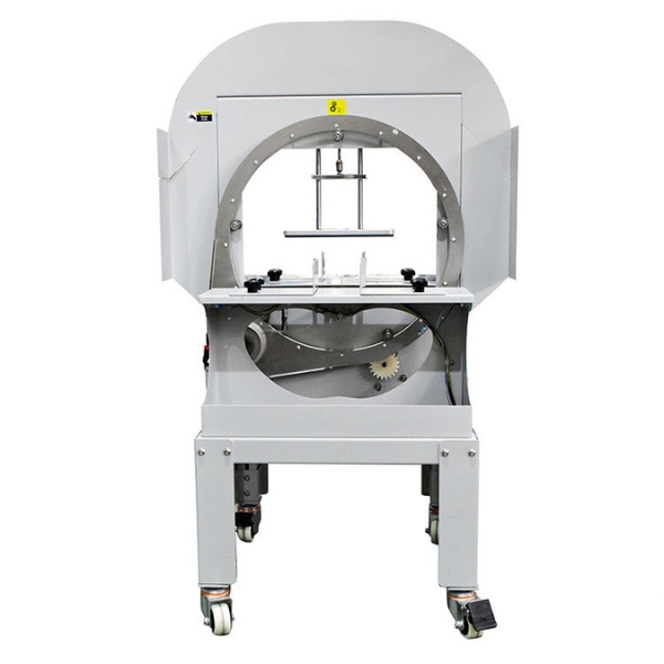 Máy quấn băng keo Yamafuji FXJ3040 hoạt động theo cơ chế bán tự động. Cụ thể, khi đặt thùng carton lên bàn làm việc, hệ thống sẽ tự động kéo băng keo và quấn theo dạng vòng tròn quanh thân thùng, băng keo được dán đều, ôm sát các mép cần cố định. Người dùng chỉ cần dịch chuyển thùng theo đúng vị trí dán mong muốn, máy sẽ tự động thực hiện quá trình quấn băng keo liên tục cho đến khi hoàn tất. Ngoài mang lại đường băng keo thẳng, đều, tăng độ chắc chắn và tính thẩm mỹ thì chúng còn giúp giảm đáng kể sức lực, thời gian như so với dán tay, nhất là khi phải dán nhiều thùng liên tục.