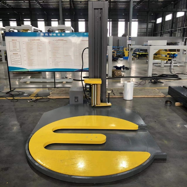 Máy sử dụng bàn xoay làm từ thép chịu mài mòn cao, đường kính 1650mm, độ dày 85mm, khả năng chịu tải lên đến 800/1500kg, quấn được với nhiều loại pallet nặng.