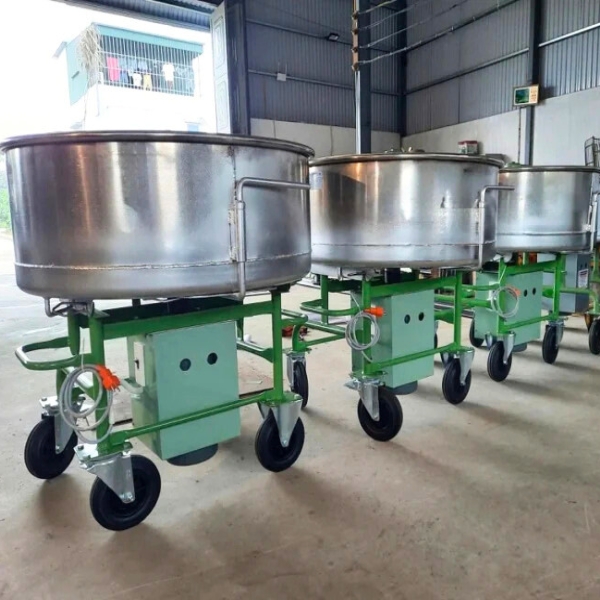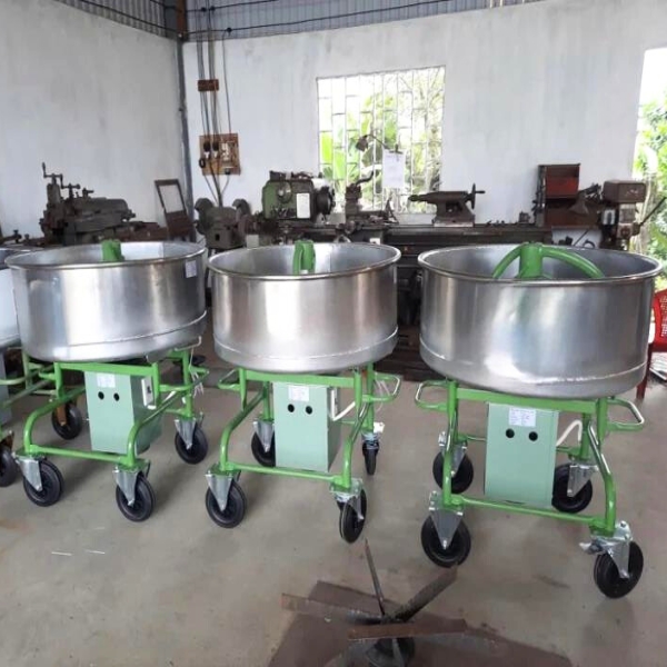 Phần khung, chân đế chắc chắn, 4 bánh xe lớn nhập khẩu Đài Loan, hỗ trợ di chuyển thuận tiện giữa các vị trí làm việc khác nhau.3. Ứng dụng của máy trộn cưỡng bức Hải Minh inox-300L