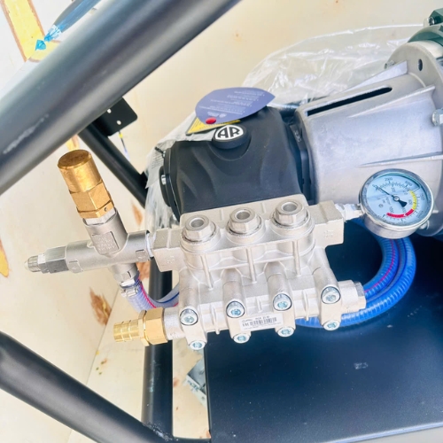 Với áp lực lên đến 500 Bar (7800 psi), Promac M78 dễ dàng làm sạch bất kỳ vết bẩn nào. Từ lớp sơn cũ bám chặt trên mạn tàu, rêu mốc lâu năm trên bề mặt bê tông, đến các vết dầu mỡ đóng cặn trong máy móc hạng nặng, tất cả đều bị thổi bay chỉ trong tích tắc. Công suất 22KW mạnh mẽ đảm bảo máy hoạt động ổn định, không bị "đuối" khi thực hiện các tác vụ nặng kéo dài.b. Đầu bơm AR nhập khẩu cực bền