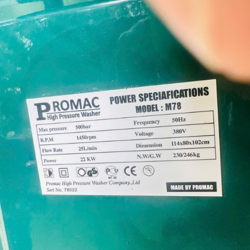 Trong phân khúc thiết bị vệ sinh công nghiệp hạng nặng, máy xịt rửa siêu cao áp Promac M78 được ví như một "người bạn đồng hành” thực thụ. Với khả năng tạo ra áp lực nước lên tới 500 Bar, sản phẩm này không chỉ đơn thuần là một thiết bị làm sạch, mà còn là giải pháp tối ưu để giải quyết những vết bẩn "cứng đầu" nhất trong các khu công nghiệp, đóng tàu hay xây dựng quy mô lớn.1. Thông số kỹ thuật của Máy rửa xe cao áp Promac M78
