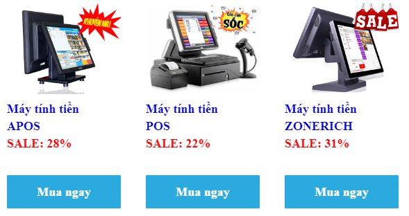 Theo đó dòng máy tính tiền có mức giảm giá cao nhất là Zonerich với mức giảm giá 31%, máy tính tiền thương hiệu lớn khác như: APOS, POS, TOPCASH, POS POIFLEX,… đếu có mức khuyến mại đến hơn 20%.