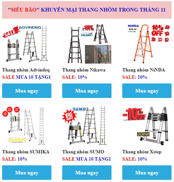 Siêu thị Hải Minh giảm giá kịch sàn thang nhôm trong tháng 11