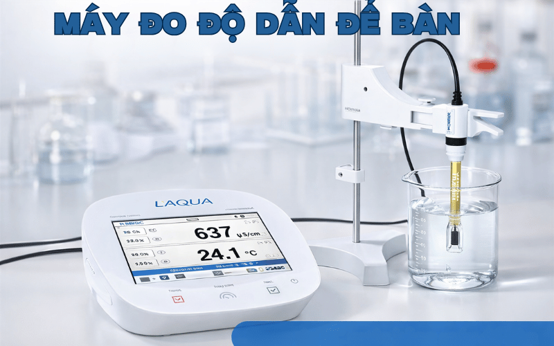 Nguyên lý hoạt động:Máy đo độ dẫn để bàn thường có điện cực nhiệt độ chuẩn và bộ vi xử lý để tính toán độ dẫn điện thực, hiệu chỉnh theo nhiệt độ và nồng độ ion. Một số model còn tích hợp khả năng ghi dữ liệu và phân tích nhanh.
